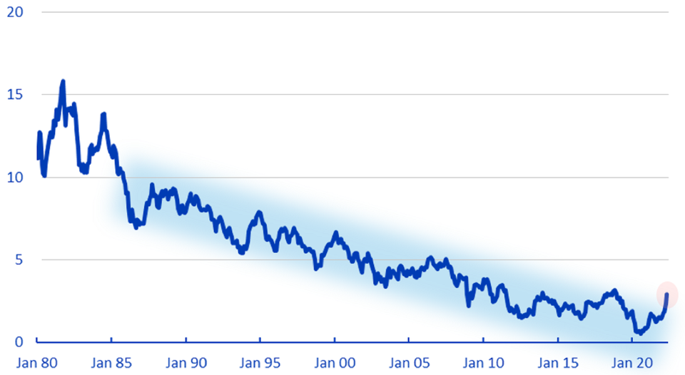 Grund für diese Entwicklung sind die hohen Inflationsraten, welche die Zentralbanken zu teilweise drastischen Zinserhöhungen zwingen. Lange galt eher das Gegenteil als Bedrohung: Deflationären Tendenzen wurden von verschiedenen Zentralbanken mit tiefen Zinsen und einer erwünschten Währungsabwertung bekämpft. Die parallel dazu stark ansteigende Verschuldung der privaten und öffentlichen Schuldner schien lange keine Gefahr darzustellen. Die Macht der Phillips-Kurve (steigende Inflation und Löhne bei sinkender Arbeitslosigkeit) schien gebrochen und verführte vereinzelt sogar namhafte Ökonomen für irrwitzige Ideen wie der Modern Monetary Theory (MMT). Nun scheint sich die Inflation jedoch als globales Phänomen zurückzumelden. Basiseffekte als Folge der Corona-Pandemie liessen die Inflation weltweit ansteigen. Der Angriffskrieg Russlands in der Ukraine hebt die Inflationsgefahr nochmals auf ein höheres Level. Erleben wir gerade die definitive Zinswende, welche Bonds mit negativen Renditen aussterben lässt?